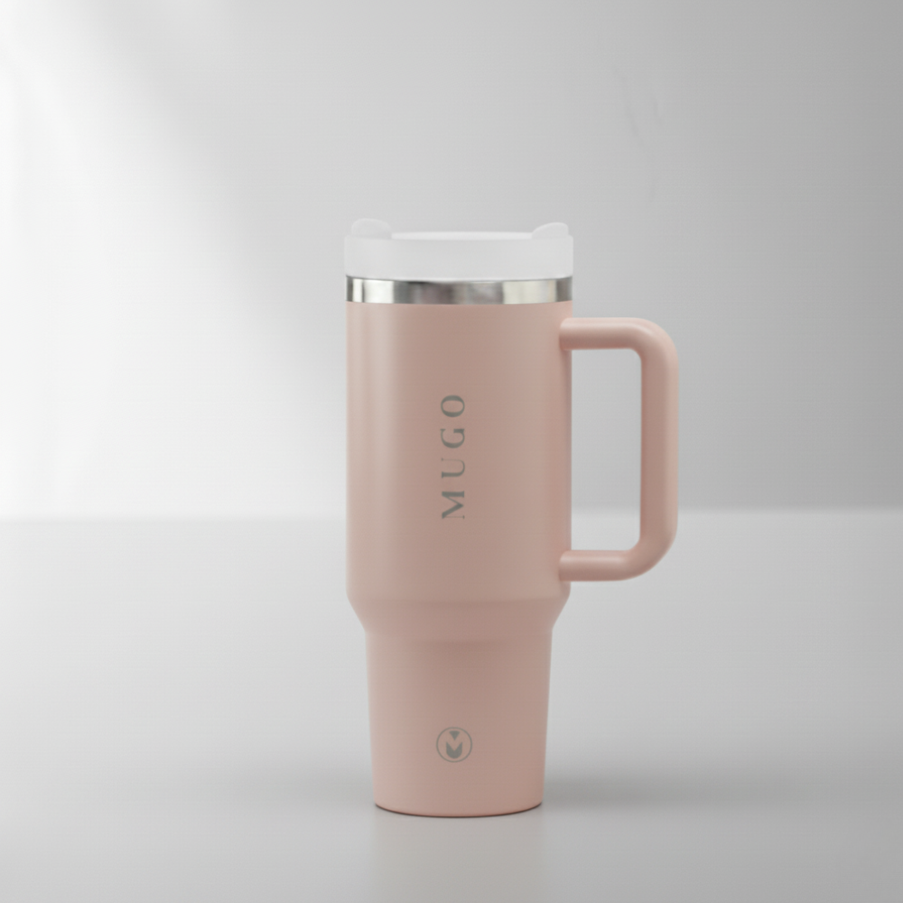 Notre travel cup isotherme MUGO est conçue pour accompagner ton quotidien : café, thé, matcha ou eau glacée, partout sans risque de débordement.